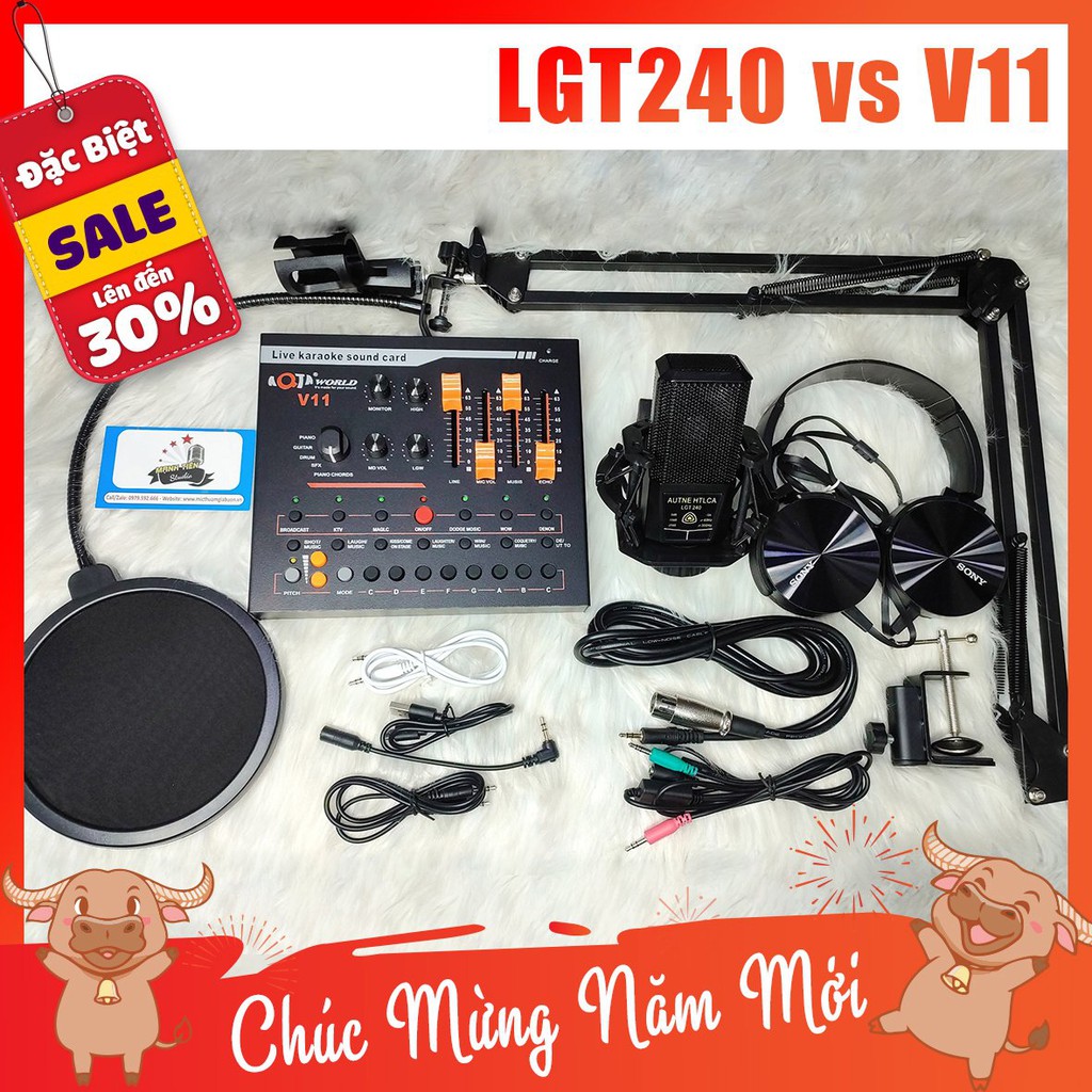 [tặng full phụ kiện] Combo Mic Thu Âm LGT240 + SoundCard v11 + full phụ kiện livestream karaoke thu âm xịn sò bh 12th