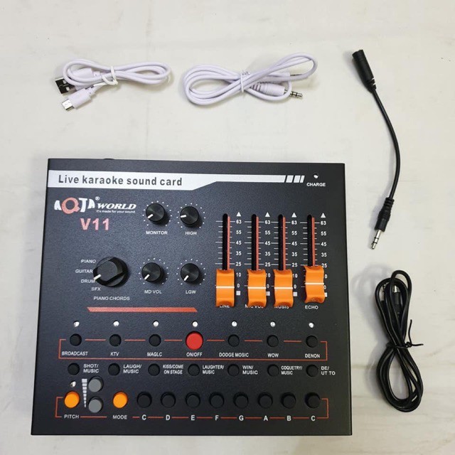 👉 Đầu vào và đầu ra của V11 đa dạng như cổng Micro, cổng Live stream, cổng Tai nghe ... còn có cả cổng cắm Micro gia đình để hát ra loa và amly