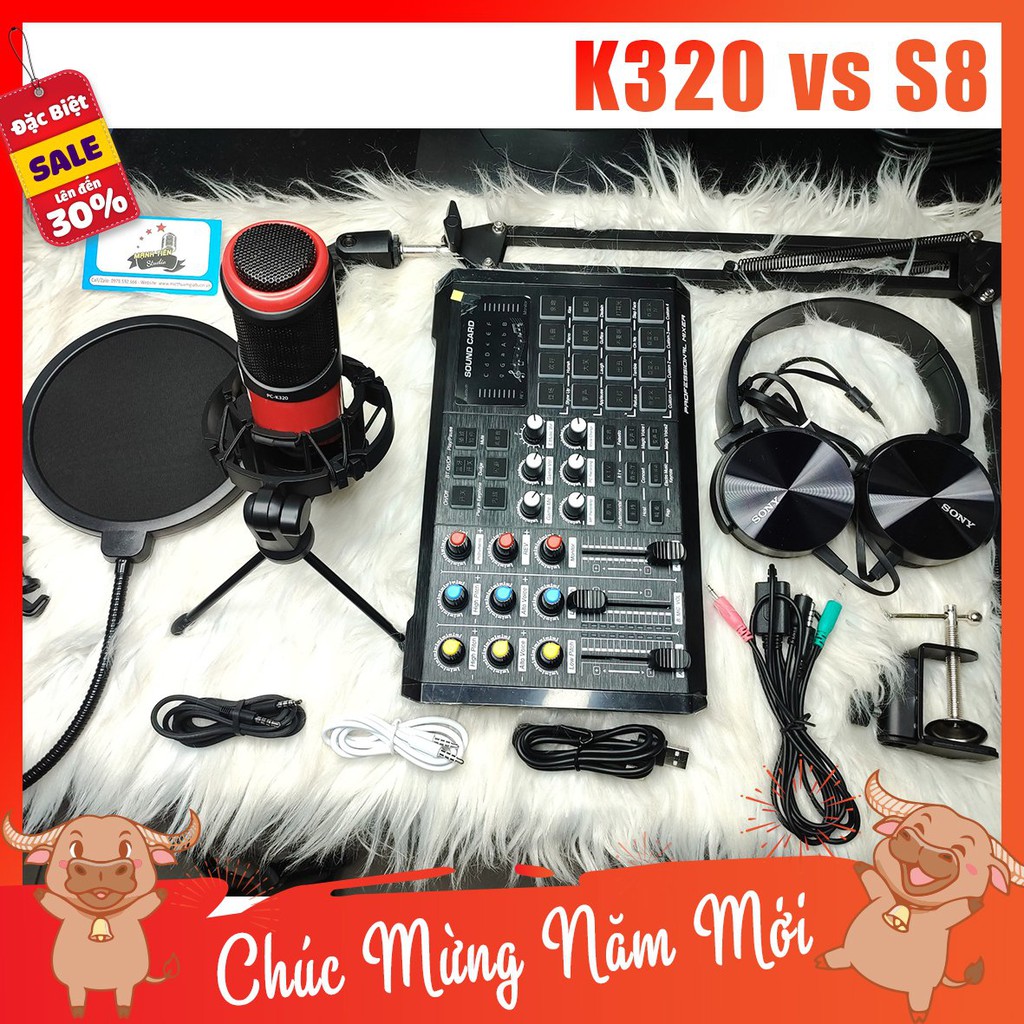Giới thiệu [tặng full phụ kiện] trọn bộ combo micro K320 + sound card S8 + full phụ kiện livestream karaoke thu âm xịn sò bh 12th