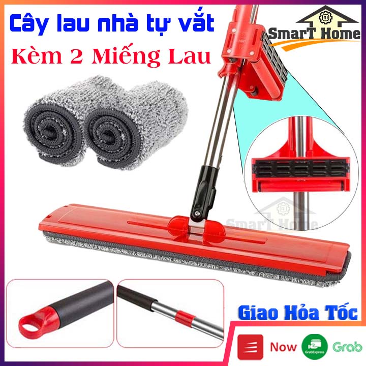 Tặng Kèm 2 Miếng Lau Chổi Lau Nhà Tự Vắt Cán Inox , Cây Lau Nhà Thông Minh Tự Vắt Xoay 360 Linh Hoạt