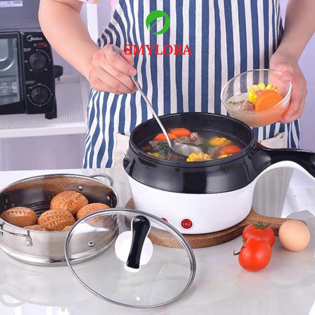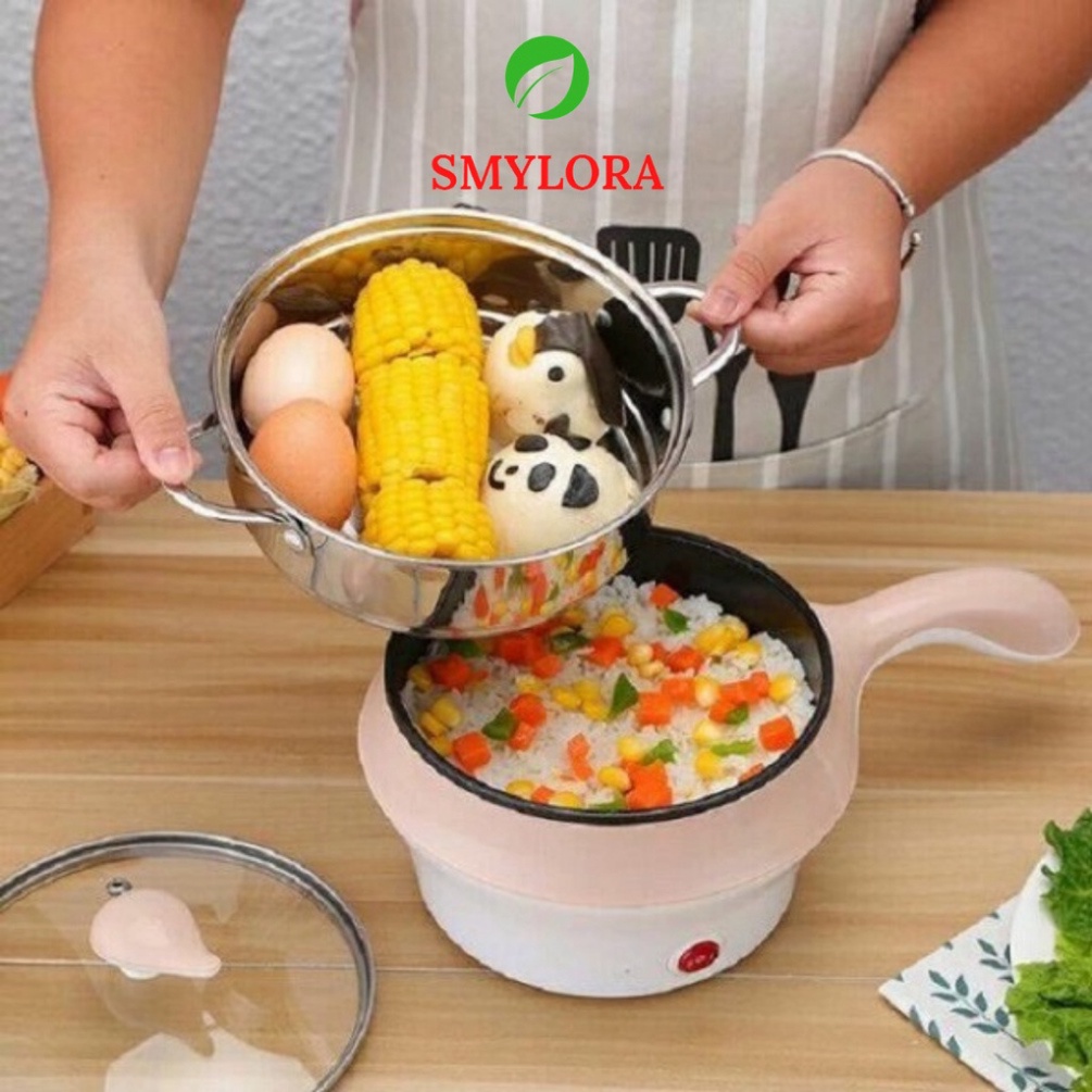 ( Tặng Kèm Khay Hấp ) Nồi Điện Mini Hai Tầng Đa Năng Dùng Chiên Xào, Hấp Luộc, Nấu Cơm, Nấu Lẩu Mini