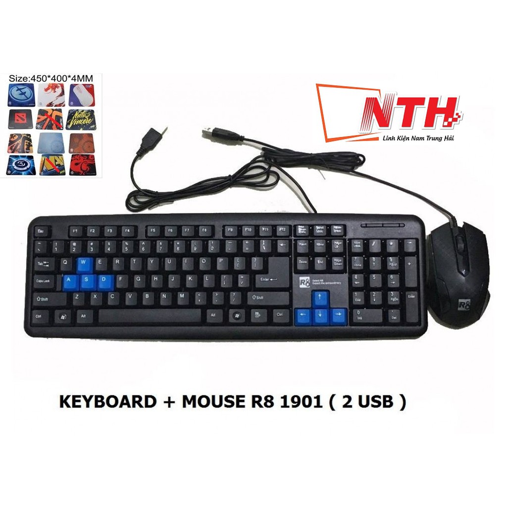 [Tặng lót chuột x88] COMBO Bộ bàn phím và chuột có dây R8 1901