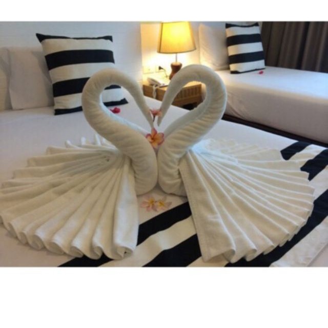 >>>Thiên nga là loài chim tượng trưng cho sự chung thủy và hạnh phúc. Chúng không thể tách rời từng cặp và luôn là biểu tượng luôn luôn được trưng bày trong phòng cưới của các cặp uyên ương!>>> Combo 4 khăn gấp thiên nga phòng cưới {TẶNG100 cánh hoa hồng đỏ} gồm: