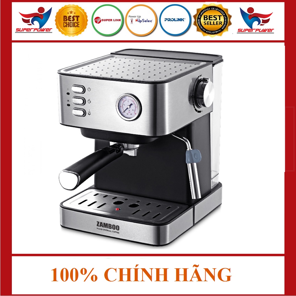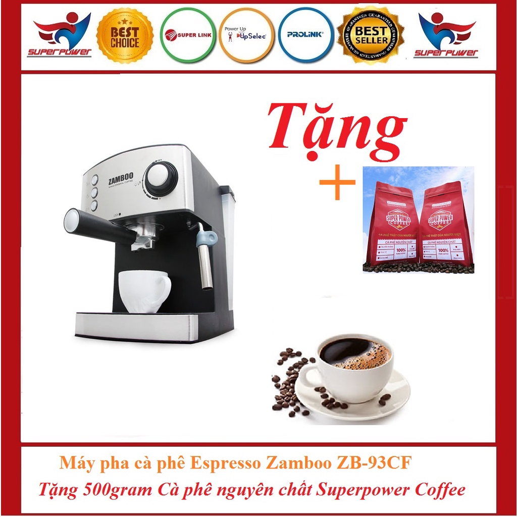 Tặng quà Máy pha cà phê Espresso Zamboo ZB-93CF (15 bar /850W/Sấy cốc, đánh sữa) Tặng kèm 500gram Superpower Coffee