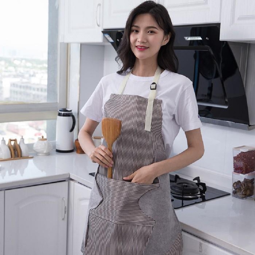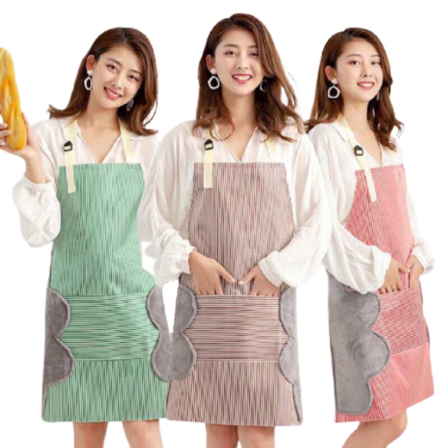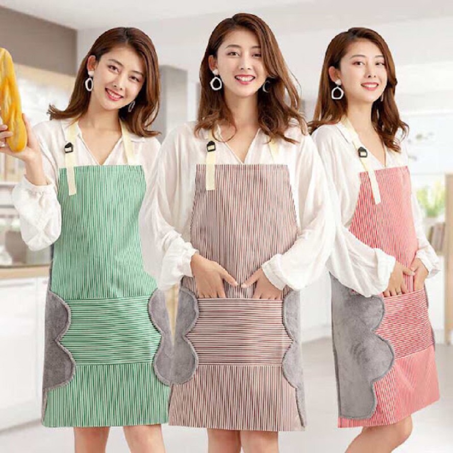 Tạp dề 3 tiện ích chống thấm có túi có chỗ lau tay mẫu sọc phong cách Hàn Quốc No.101225