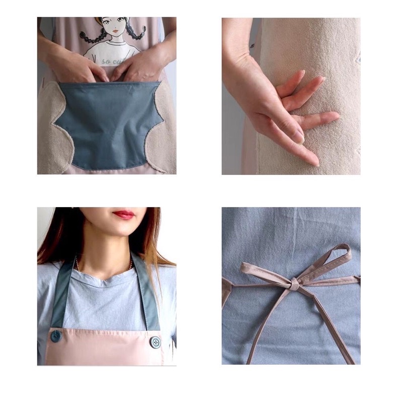 Tạp dề cao cấp + Tạp dề chống thấm + Có chỗ để điện thoại + Chỗ lau tay tiện lợi kích thước 72*68cm*Mô tả sản phẩm: