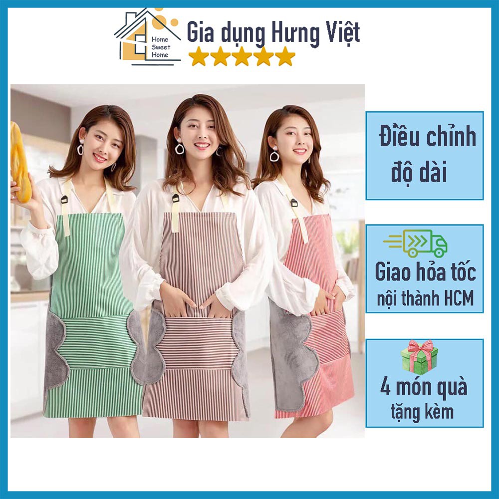 Tạp dề chống thấm, có khăn lau tay bên hông tiện dụng [TẠP DỀ SỌC]