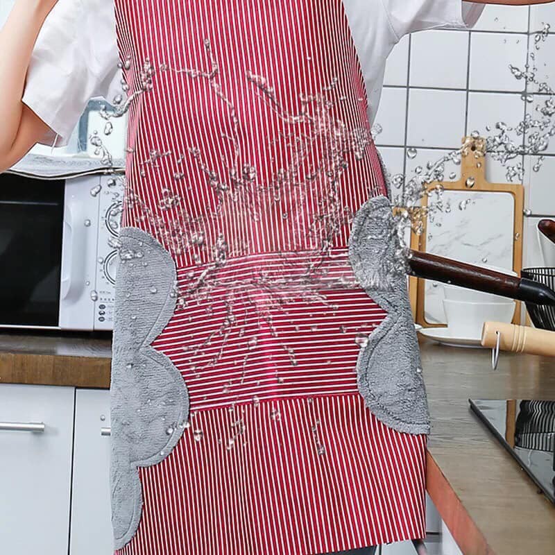 -Thêm 1 điểm nổi bật đó chính là chiếc tạp dề dễ thương có 2 miếng nhung hai bên sườn để lau tay bên cạnh chức năng là 1 chiếc khăn lau đa năng còn là 1 điểm nhấn trang chí cho chiếc tạp dề mới của chúng ta thêm phần xinh động và bắt mắt