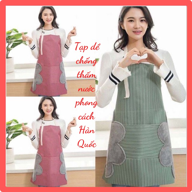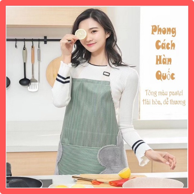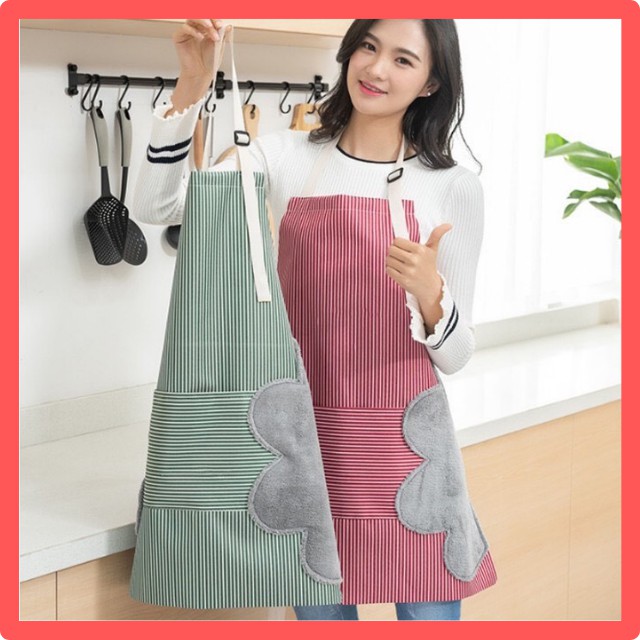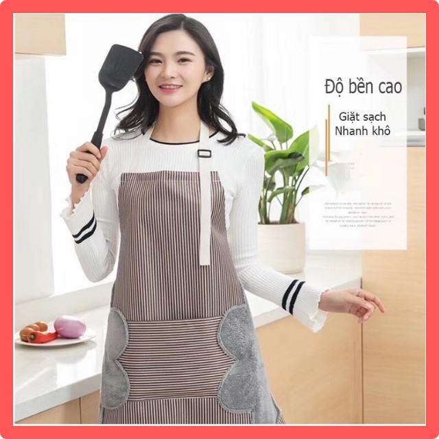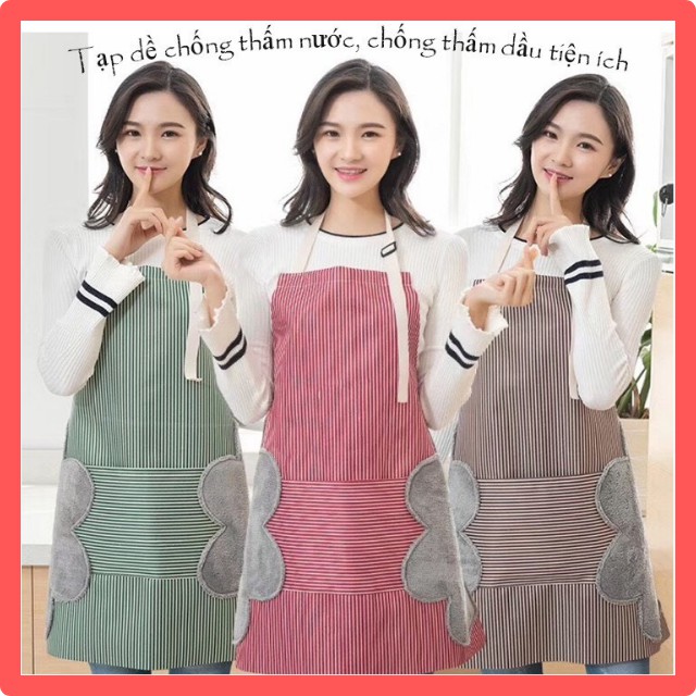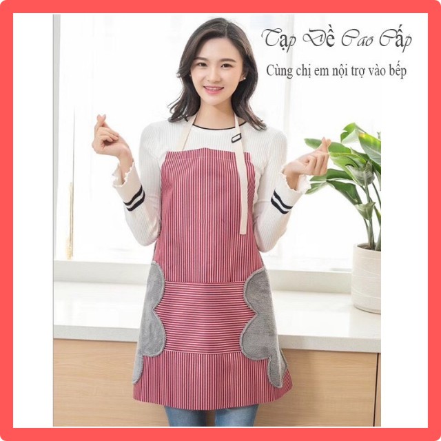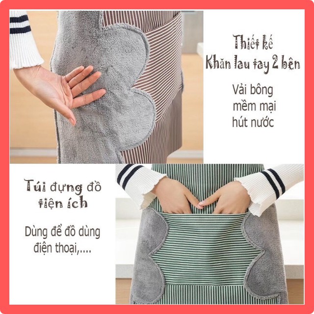 Tạp dề chống thấm nước, chống thấm dầu thiết kế 2 khăn lau tay San Hô phong cách Hàn Quốc.- Tạp dề chống thấm nước, thấm dầu có thiết kế khăn lău hai bên eo vô cùng tiện lợi. Chất liệu nhung san hô mềm mại có khả năng thấm hút tốt và mềm dịu với da tay của bạn.