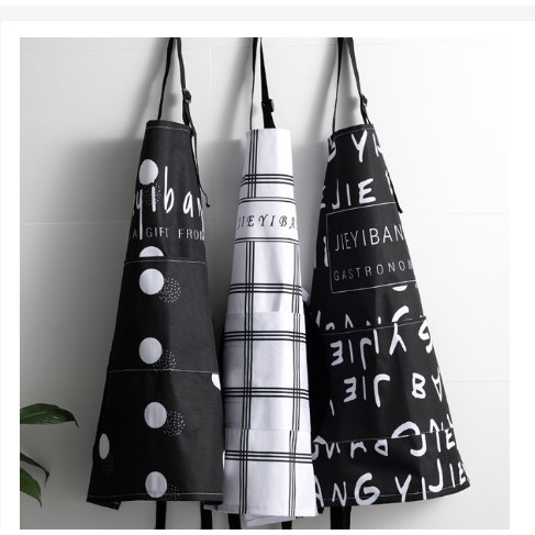 ** Tạp dề chất liệu dày chắc, giúp bạn giữ quần áo sạch sẽ không bị vấy bẩn khi làm bếp** Gồm ba mẫu: CHỮ ĐEN, CHIẾC LÁ ĐEN, Ô CA RÔ