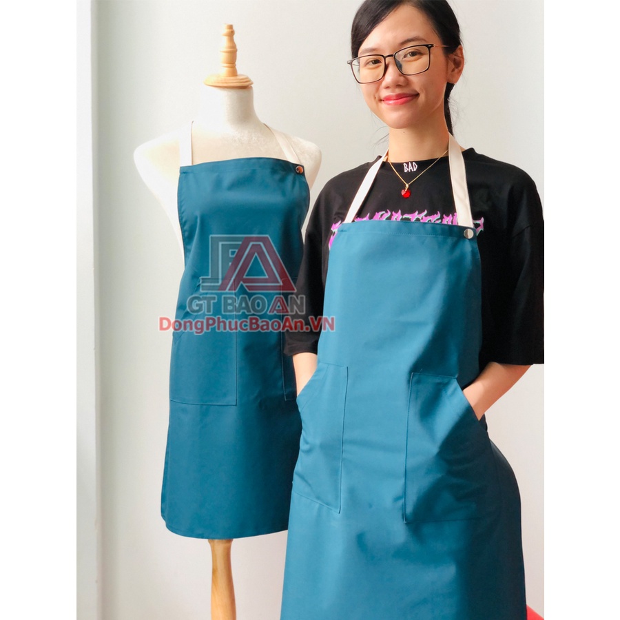 - Tạp dề vải dù với thiết kế đơn giản, dạng tạp dề yếm hay còn gọi là tạp dề đeo cổ. Mang lại nhiều giá trị tiện dụng cho người mặc. Bảo vệ tốt trang phục bên trong hiệu quả, tránh bụi bẩn.