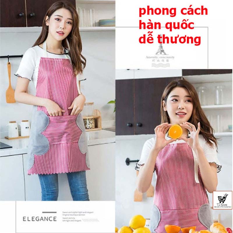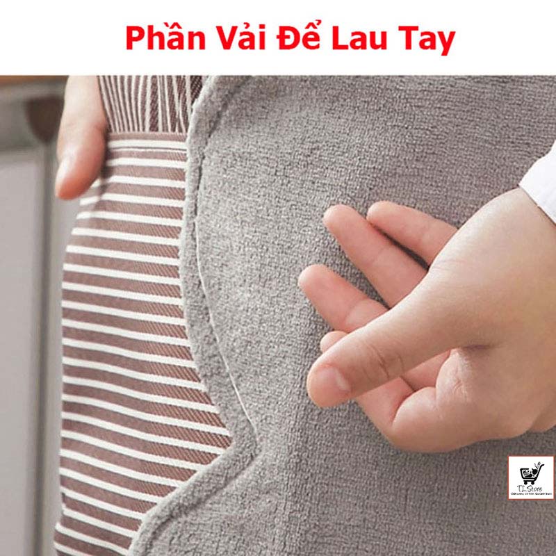 Tạp dề kẻ hoa có khăn lau tay bên hông, tạp dề chống thấm nước (Tạp Dề Sọc)