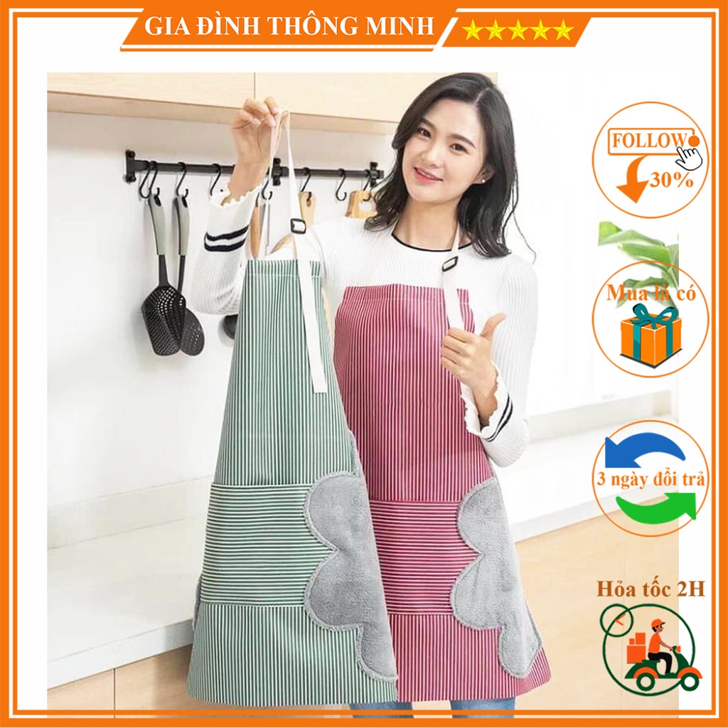 Giới thiệu (𝗚𝗶𝗮́ 𝗦𝗶̉) Tạp Dề Kẻ Sọc Có Khăn Lau Tay 2 Bên Hông, Có Túi Để Điện Thoại, Chống Thấm Nước Siêu Đẹp, Tiên Lợi