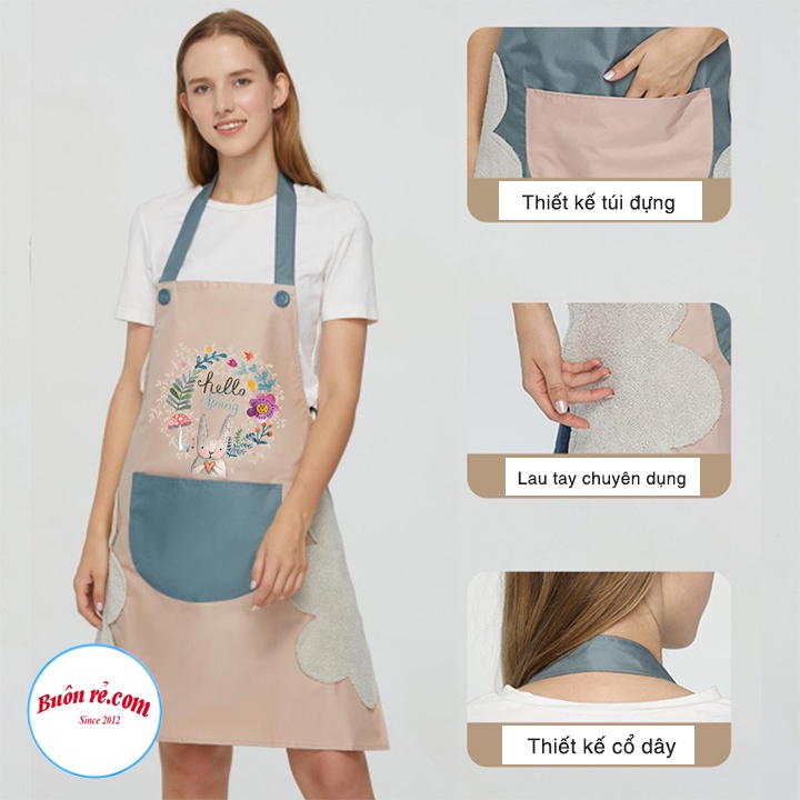 Tạp dề nấu ăn họa tiết thỏ, chống thấm nước hiệu quả – Tạp dề có túi và khăn lau hai bên hông tiện lợi – 01519