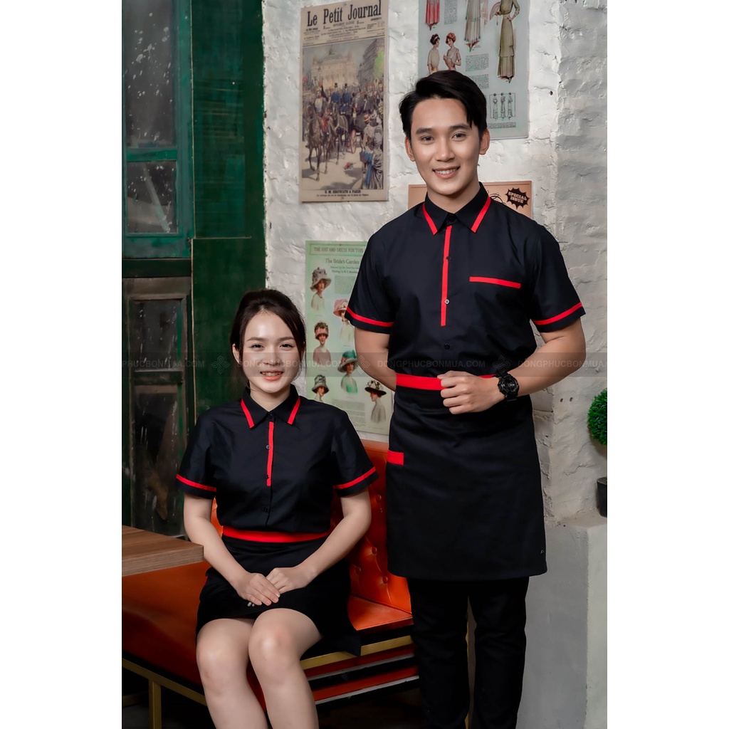 Tạp dề ngắn cho nhân viên phục vụ nhà hàng, quán cà phê - Màu đơn phối viền đỏ - Freesize, phù hợp với nam, nữ