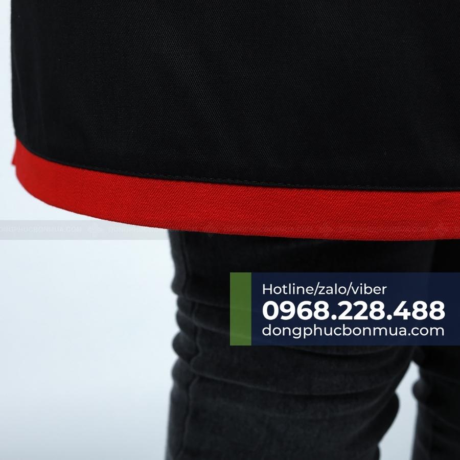 ✔️ Thiết kế: Tạp dề ngắn cột ngang hông với 2 túi vuông. Tạp dề màu đen, nâu và đỏ phối viền khác màu tạo điểm nhấn. Thiết kế dây cột dài vừa với mọi dáng người và dễ dàng điều chỉnh.