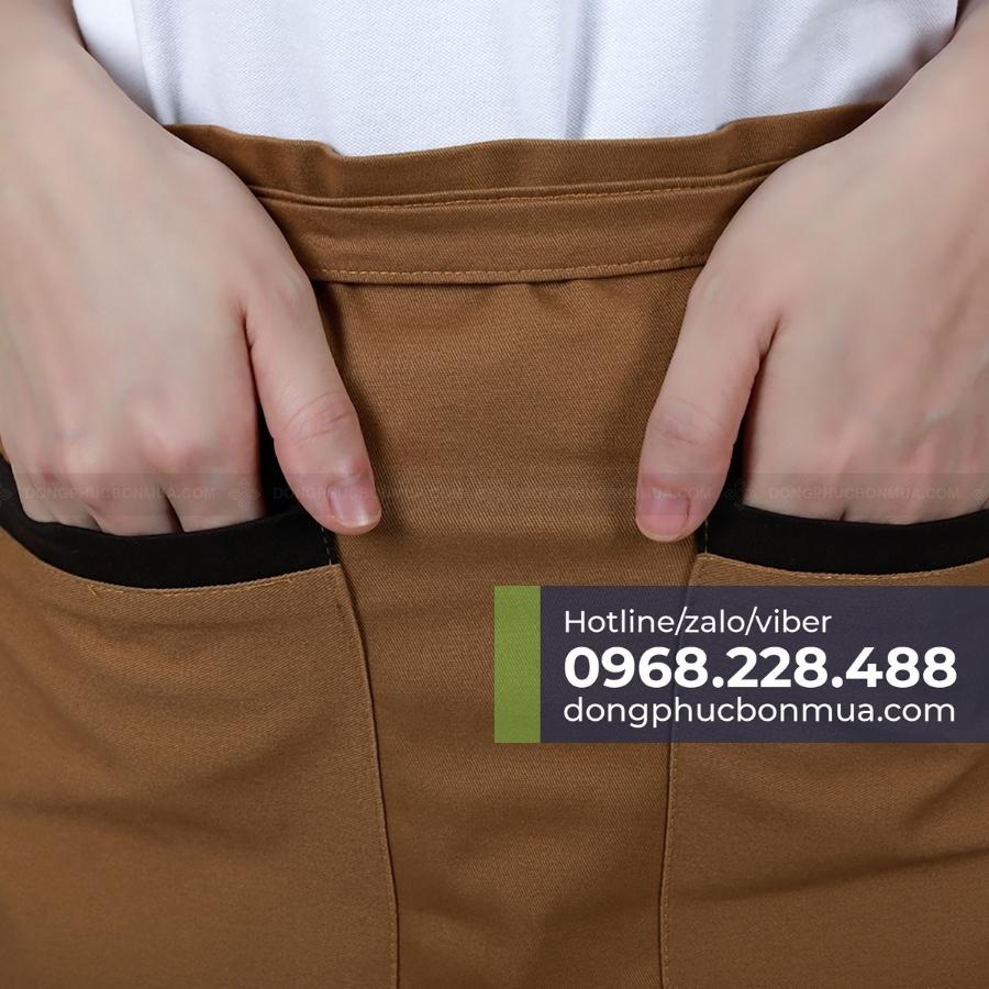 ✔️ Quy cách: Tạp dề ngắn nửa người, có 2 dây cột sau, có túi đựng phía trước tiện dụng để đựng sổ ghi chép, sổ order, điện thoại, ipad…