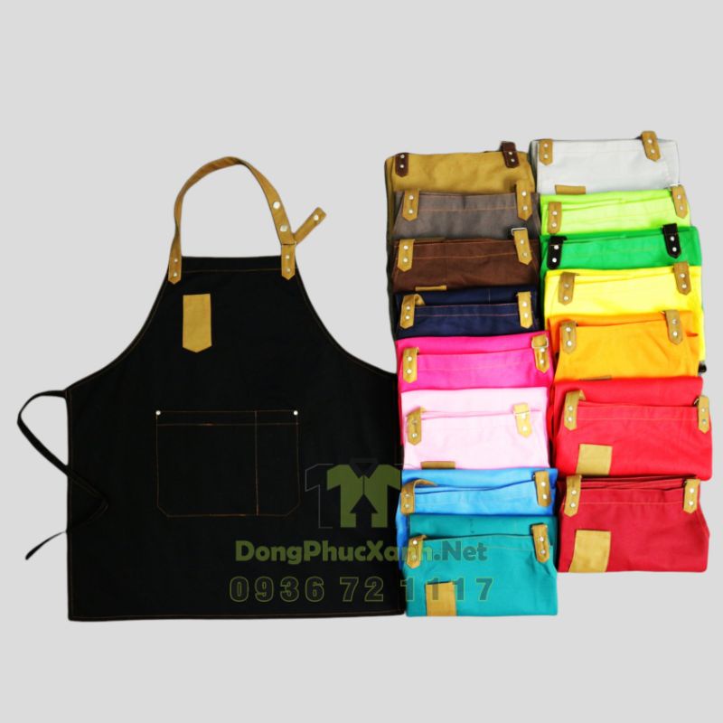 ** Lưu ý: Tạp dề may theo yêu cầu số lượng tối thiểu từ 20 chiếc. Số lượng ít hơn vui lòng chọn trong 20 mẫu tạp dề may sẵn đủ màu để in logo.