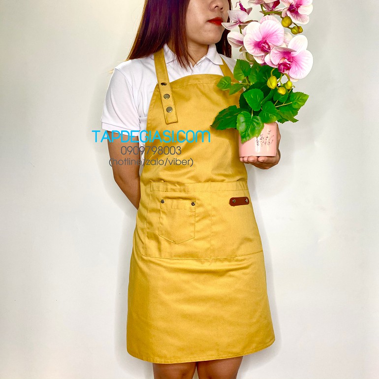 - Size: free size Nam Nữ đều sử dụng được vì đối với tạp dề yếm trên cổ có tăng đơ để tăng giảm độ dài tạp dề.