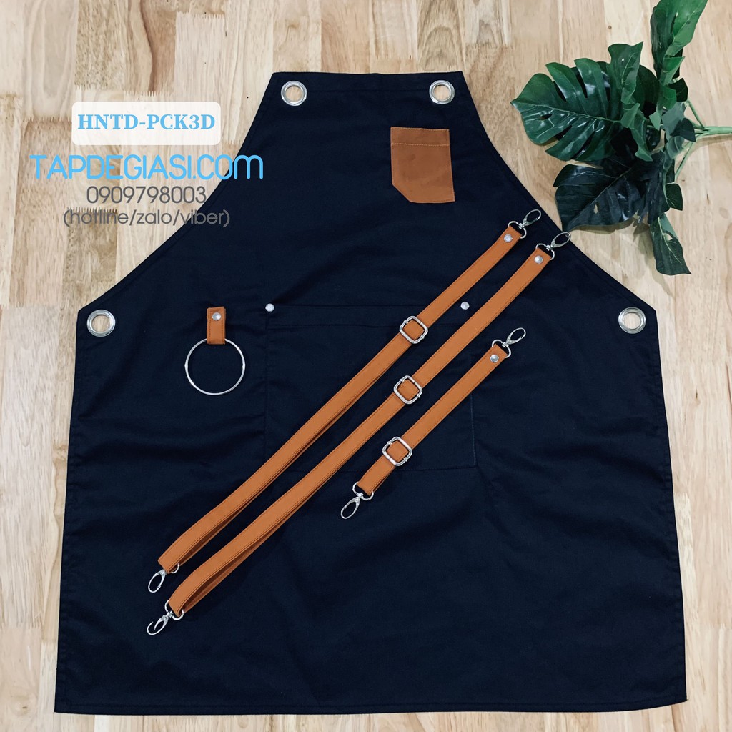 Tạp dề pha chế tạp dề bếp dành cho Nam Nữ phục vụ làm đồng phục 3 nút bấm