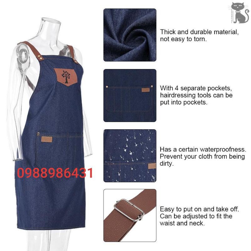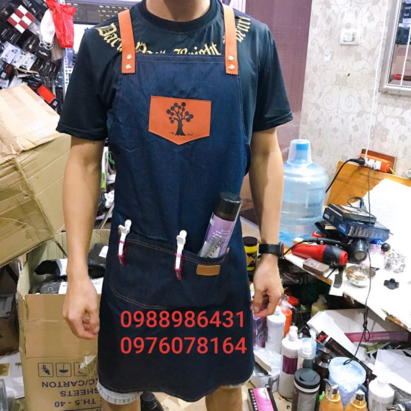 - Tạp dề dùng cho thợ mặc, thợ cắt tóc làm tóc trong salon tóc barbershop- Chất liệu jean xanh coban đẹp chất