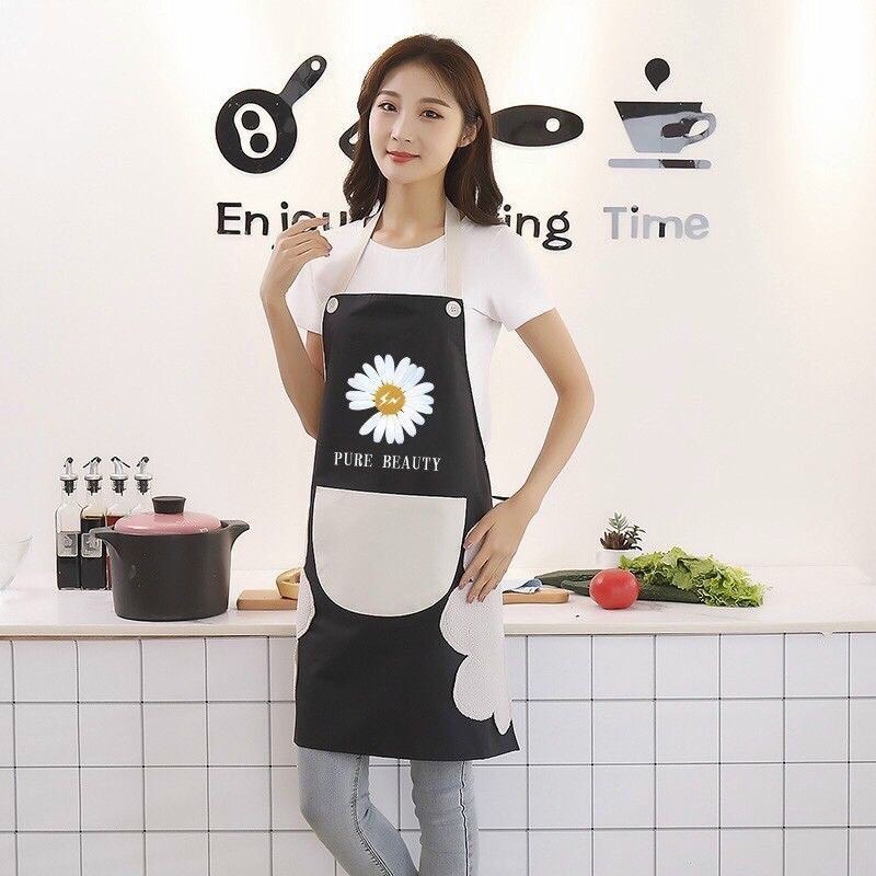 + Tạp dề màu sắc nhã nhặn, trang trí hoa cúc dễ thương và thiết kế tiện dụng khiến cho việc bếp núc trở nên thú vị hơn