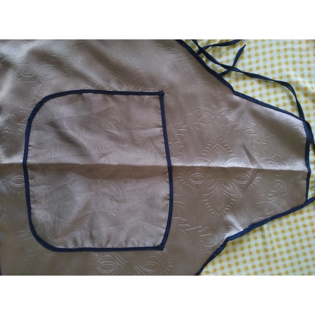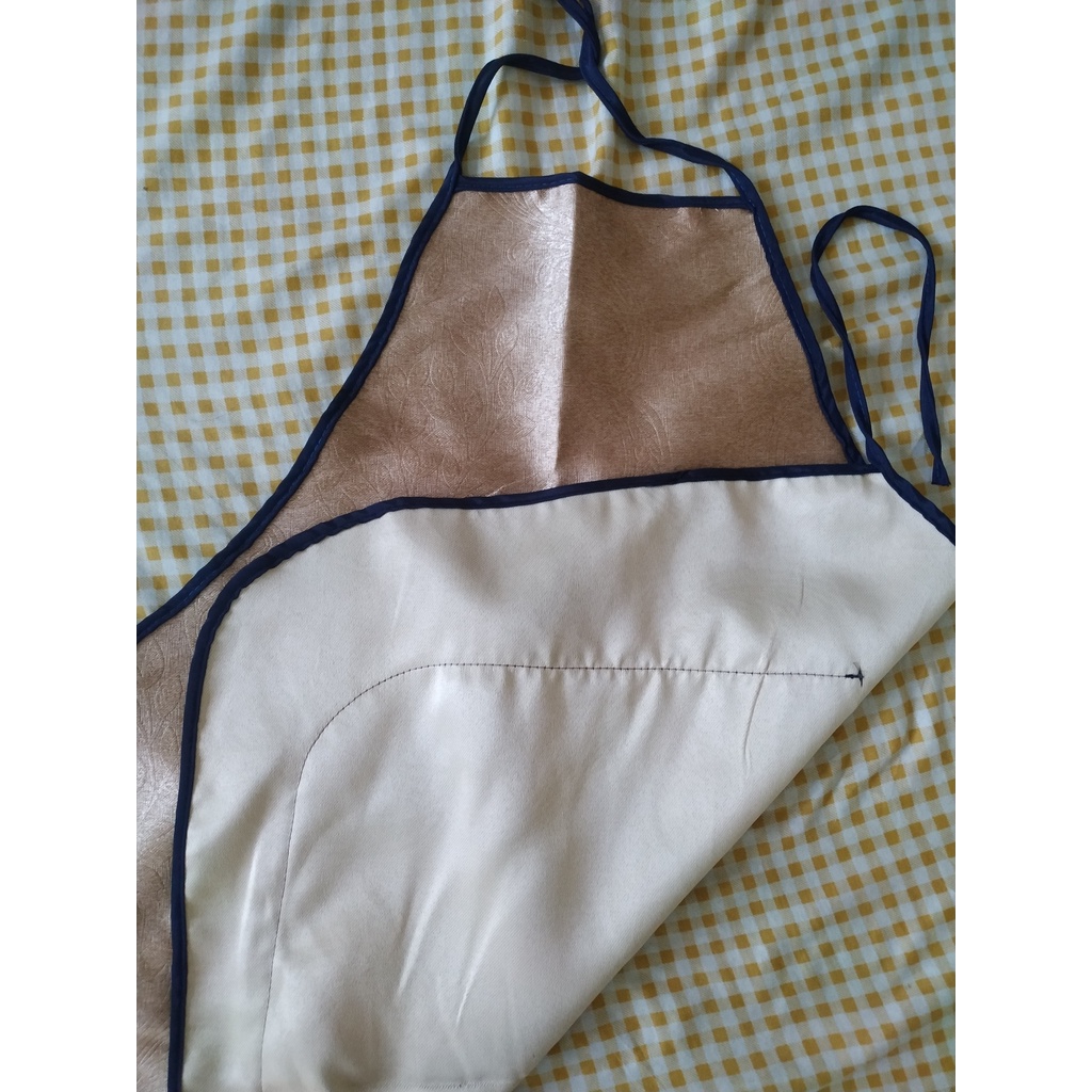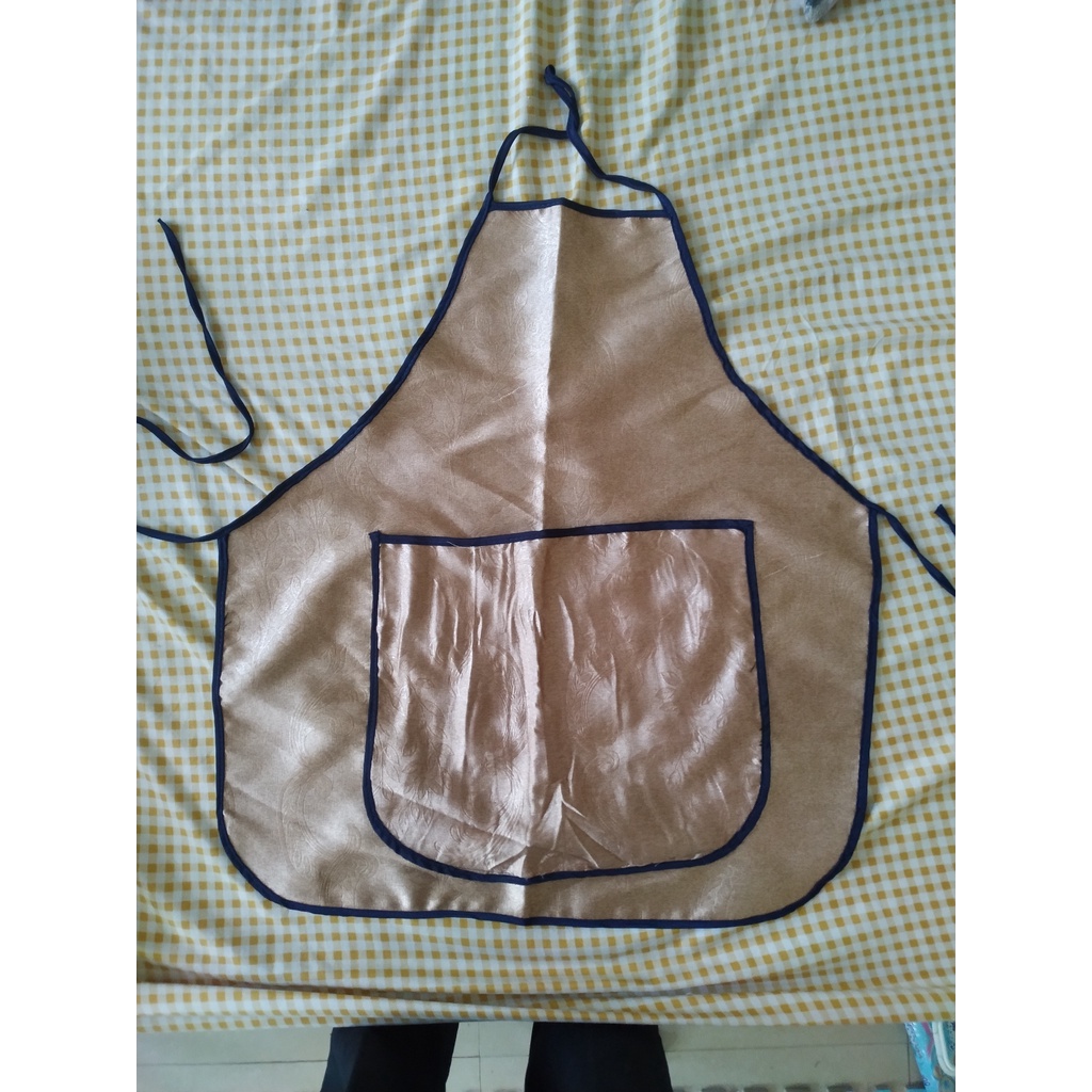 Tạp dề vài dày dặn, màu và họa tiết sang trọngCó kèm túi trước và dây buộc chắc chắn