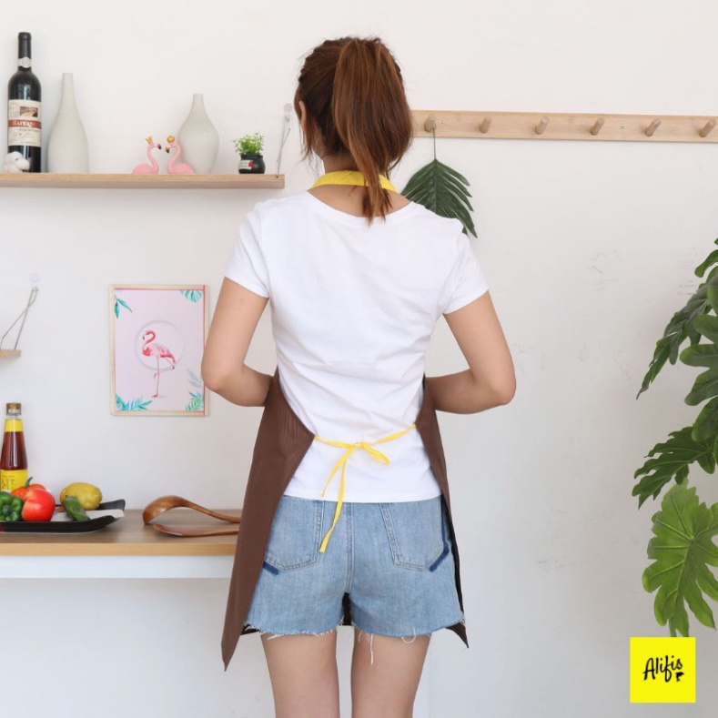 + Tạp dề được làm từ chất liệu polyester dày dặn, chống bám bẩn, chống nước