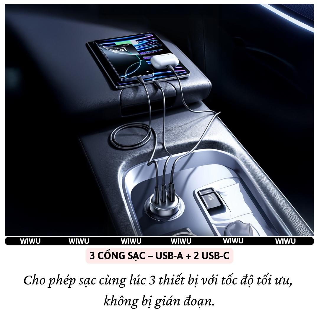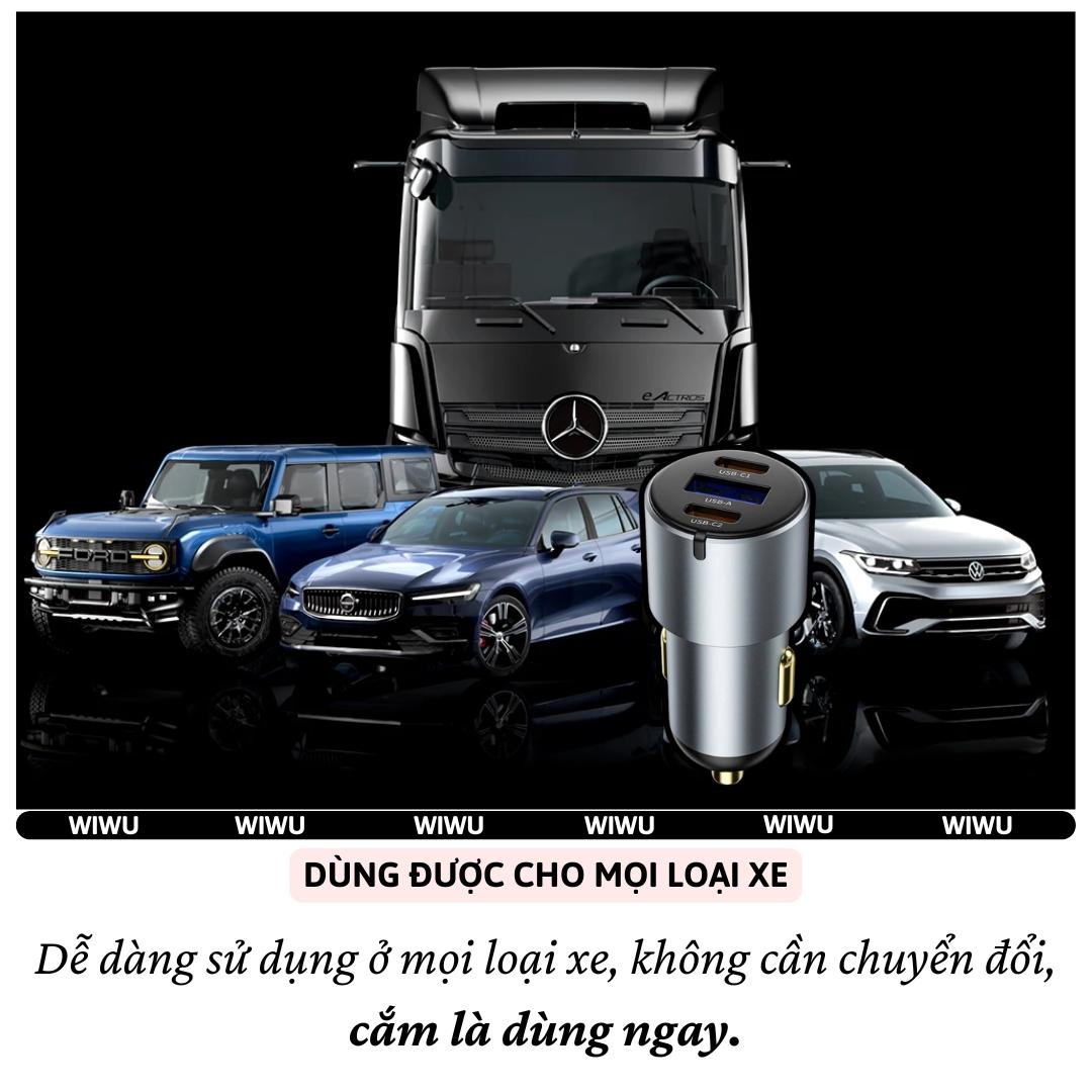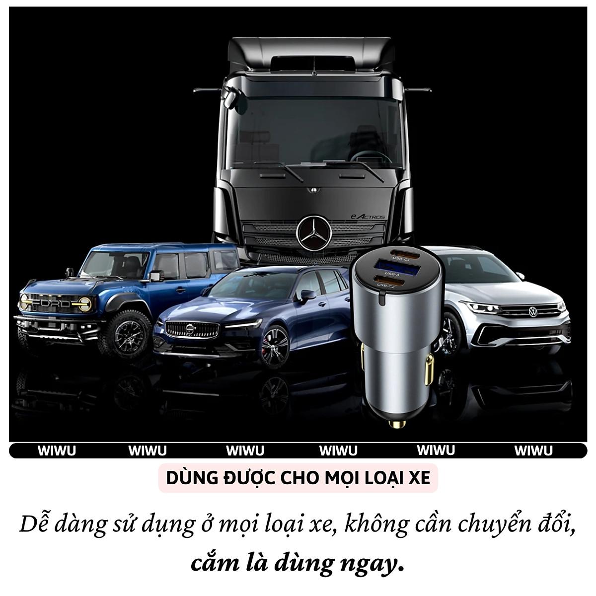 Giới thiệu Tẩu củ sạc nhanh 60W cho xe hơi ô tô 2 PD3.0 Type- C + USB-A QC3.0 hiệu WIWU Nano Pro cho iphone 17 16 15 14 13 12 iPad vivo samsung macbook - hàng chính hãng