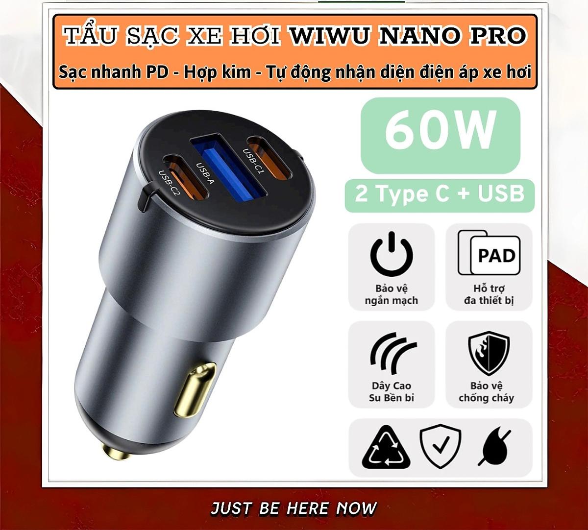 ️ BỘ SẠC Ô TÔ NHANH WIWU NANO PRO 60W – SẠC NHANH, CHẮC CHẮN, AN TOÀN TUYỆT ĐỐI Bạn thường xuyên phải di chuyển bằng ô tô và cần sạc nhiều thiết bị cùng lúc? Bạn lo lắng sạc ô tô làm nóng máy, h...- Giao hàng toàn quốc