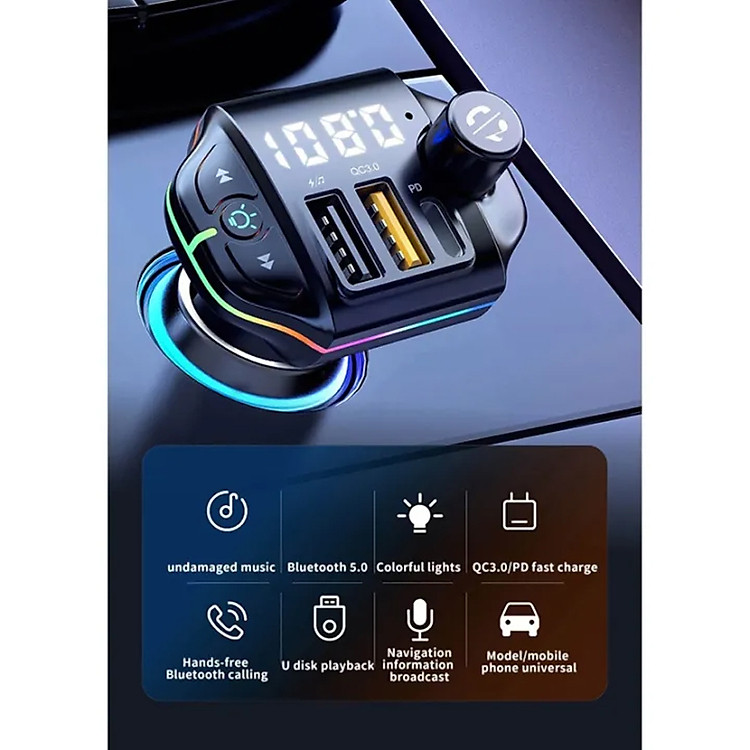 - Hướng dẫn sử dụng: Cắm trực tiếp đầu chia vào lỗ mồi trên xe ô tô. Nhấn và giữ nút điện thoại với 3 giây, xoay vòng quay để điều chỉnh tần số.