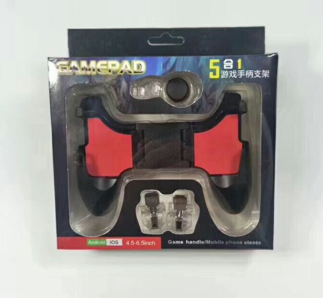 Bộ tay cầm chơi game giành cho tất cả các dòng điện thoại từ 5.5 inch trở xuống.1 bộ 5 món như hình chụp,các món cần thiết hỗ trợ chơi game.