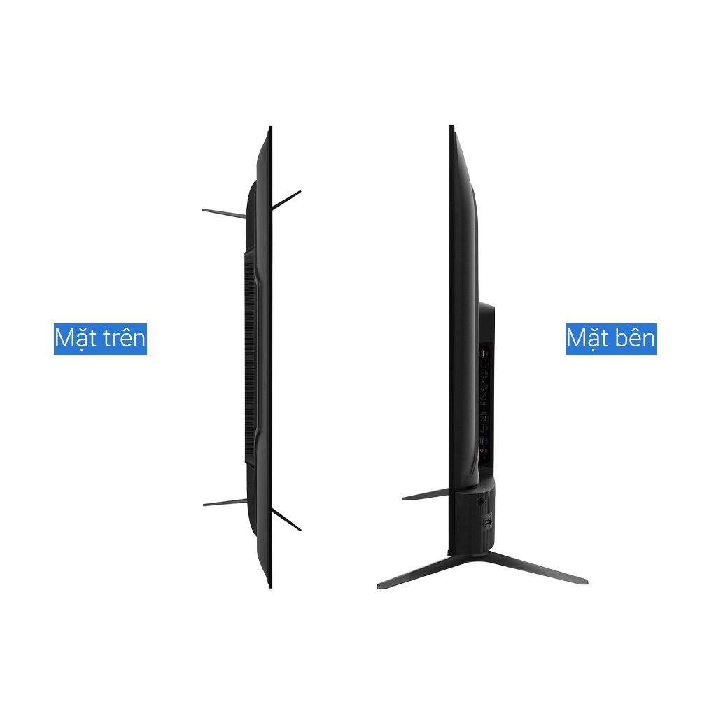 Chân đế có dạng chữ V úp ngược bố trí tivi TCL 55 inch kiểu để bàn ổn định, vững chắc, nếu muốn tiết kiệm không gian bạn nên chọn lắp đặt kiểu treo tường trong phòng khách, phòng họp lớn, vừa.