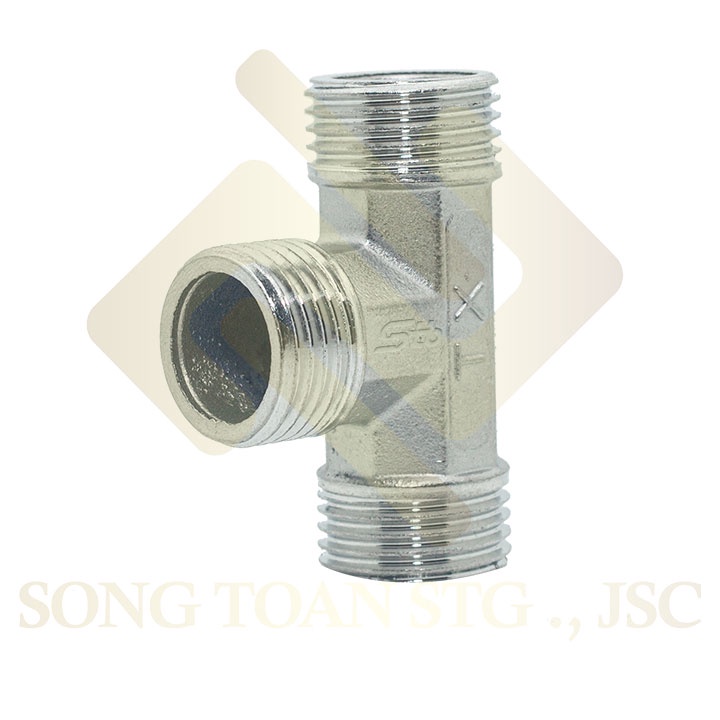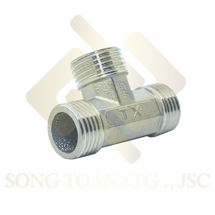 - Kết nối: Khớp nối T 3 đầu ren trong để kết nối với các khớp nối ren ngoài , có ba đầu nối, một nối thẳng chia ra 2 góc cong 90 độ cho nối ống cho hệ thống.