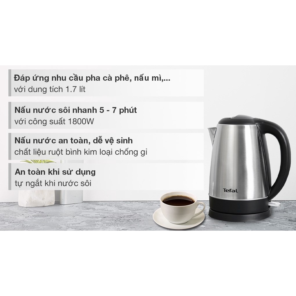 Giới thiệu Tefal- Bình đun siêu tốc inox dung tích 1.7L KI800D68- Hàng chính hãng