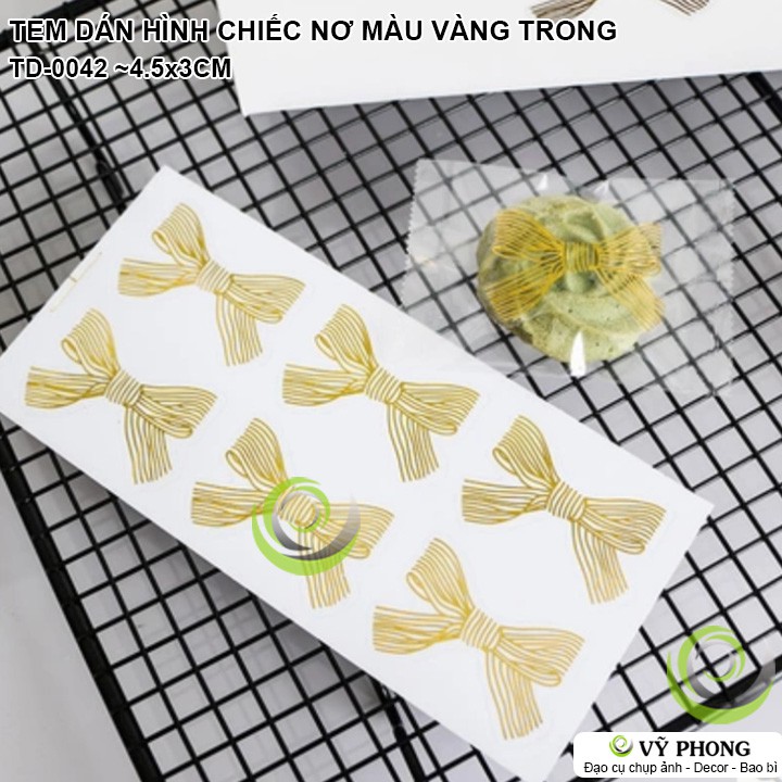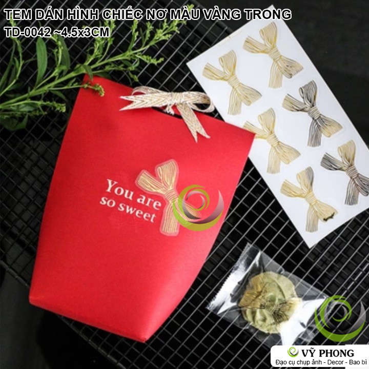 TEM DÁN CHIẾC NƠ VÀNG STICKER NHÃN DÁN TRANG TRÍ NIÊM PHONG HỘP QUÀ BAO BÌ BÁNH KẸO TD-0042