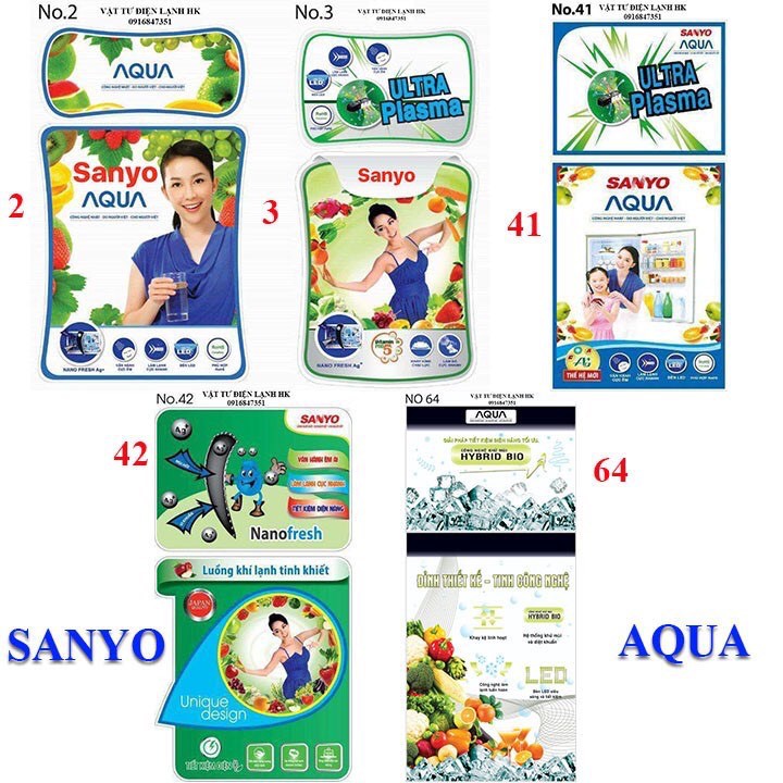 Thiết Bị Điện Gia Dụng > Đồ gia dụng nhà bếp > Tủ lạnh || TEM DECAN DÁN TỦ LẠNH - Các hãng Panasonic Sanyo Aqua Toshiba Samsung Sharp Hitachi LG ( Sử dụng băng dính 2 mặt)Còn hàng