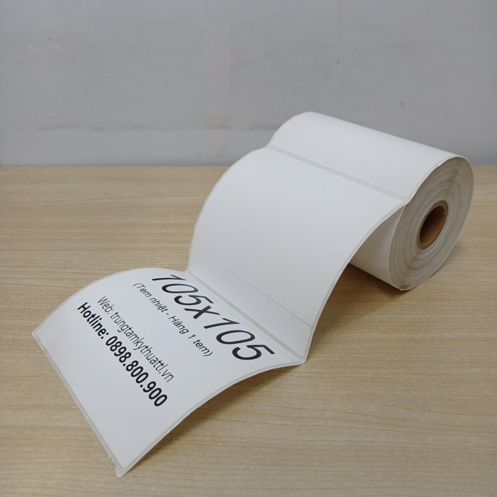 Sản phẩm Tem nhiệt in Shopee, vận đơn TMĐT, đơn hàng, in phiếu giao hàng khổ 105x105mm (Ngang: 105mm - Dọc 105mm), chuyên dùng để in tem dán, tem nhãn, in vận đơn, phiếu giao hàng TMĐT, in đơn hàng shopee.Sản phẩm có độ trắng cao, trên 85 ISO, tích hợp keo dán sẵn, chỉ việc in và bóc ra dán lên sản phẩm, vỏ hộp, vỏ thùng, dán lên kiện hàng TMĐT, đơn hàng shopee...
