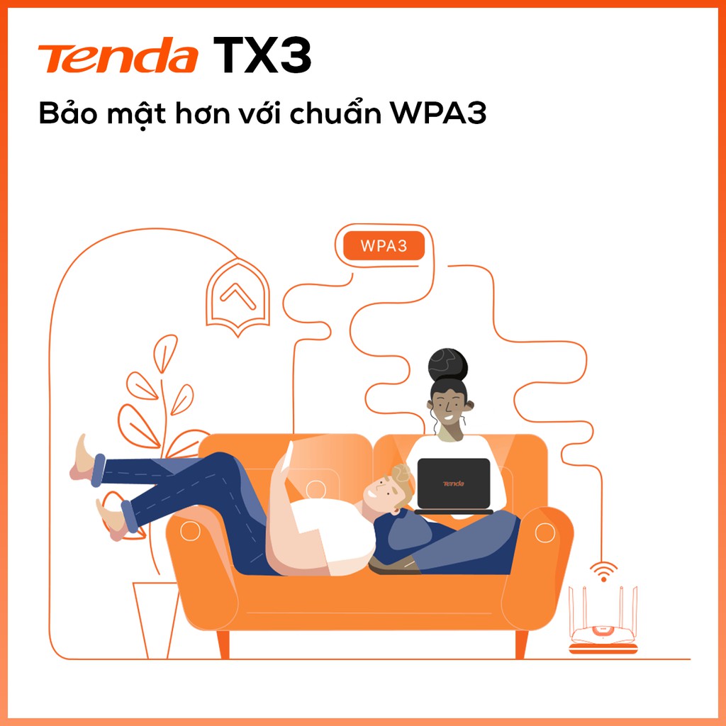 Tenda TX3 cung cấp chuẩn bảo mật WiFi mới WPA3, tăng khả năng chống lại các hành động xâm nhập trái phép vào mạng WiFi, giúp bạn an tâm và an toàn hơn khi sử dụng WiFi