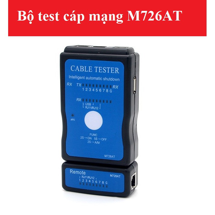 - Dụng cụ test dây mạng model M726AT là một thiết bị thông minh, giúp các kỹ thuật viên kiểm tra tín hiệu mạng nhanh chống. Kích thước nhỏ gọn và trọng lượng nhẹ giúp dụng cụ test có tính di động cao - - Ngoài PAC-1102, bạn cũng có thể sử dụng bộ test cáp M726AT với khả năng kiểm tra cáp RJ45, USB dạng A/B.