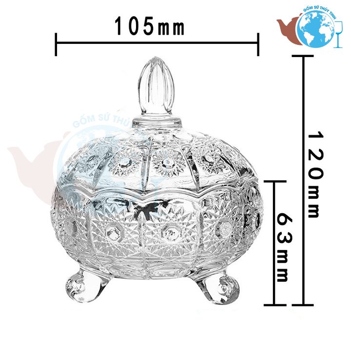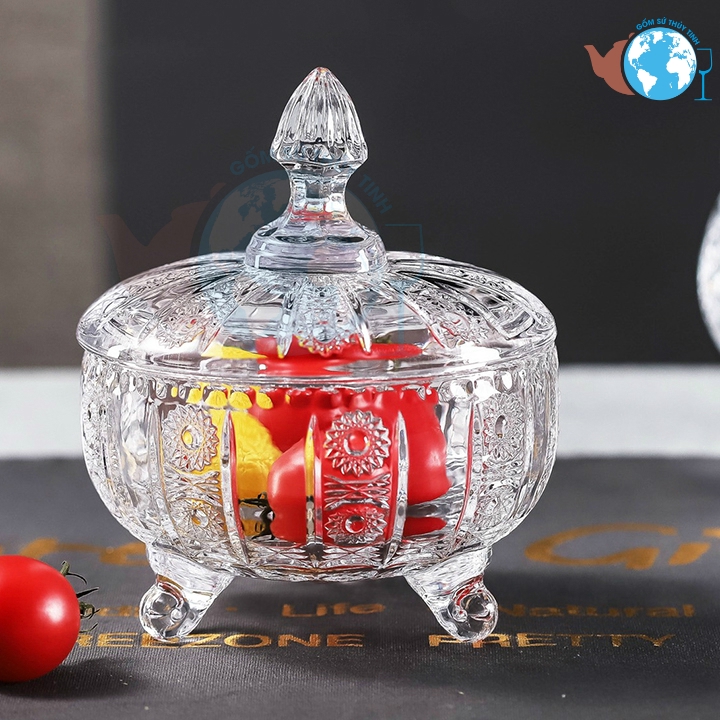 Thố mứt thủy tinh pha lê 3 chân cao cấp.Kích thước sản phẩm: