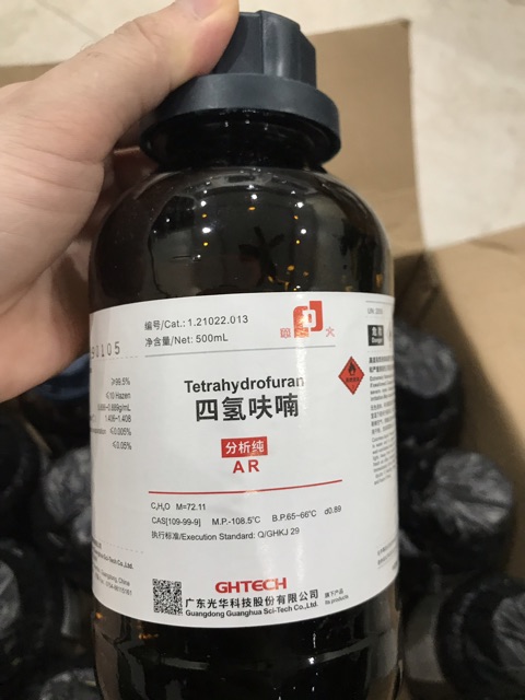 Nhà cửa & Đời sống > Làm vườn > Trang trí vườn || Tetrahydrofuran 99.5% C4H8O chai 500ml Xylong Trung Quốc thf CAS 109-99-9Còn hàng