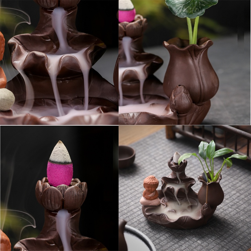 Giới thiệu Thác khói trầm hương Như Lai Toạ Thiền tặng 10 nụ trầm, thác khói chảy ngược dùng đốt hoặc xông nụ trầm hương