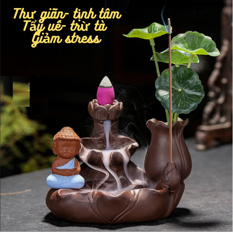 Thác khói trầm hương Như Lai Toạ Thiền tặng 10 nụ trầm, thác khói chảy ngược dùng đốt hoặc xông nụ trầm hương