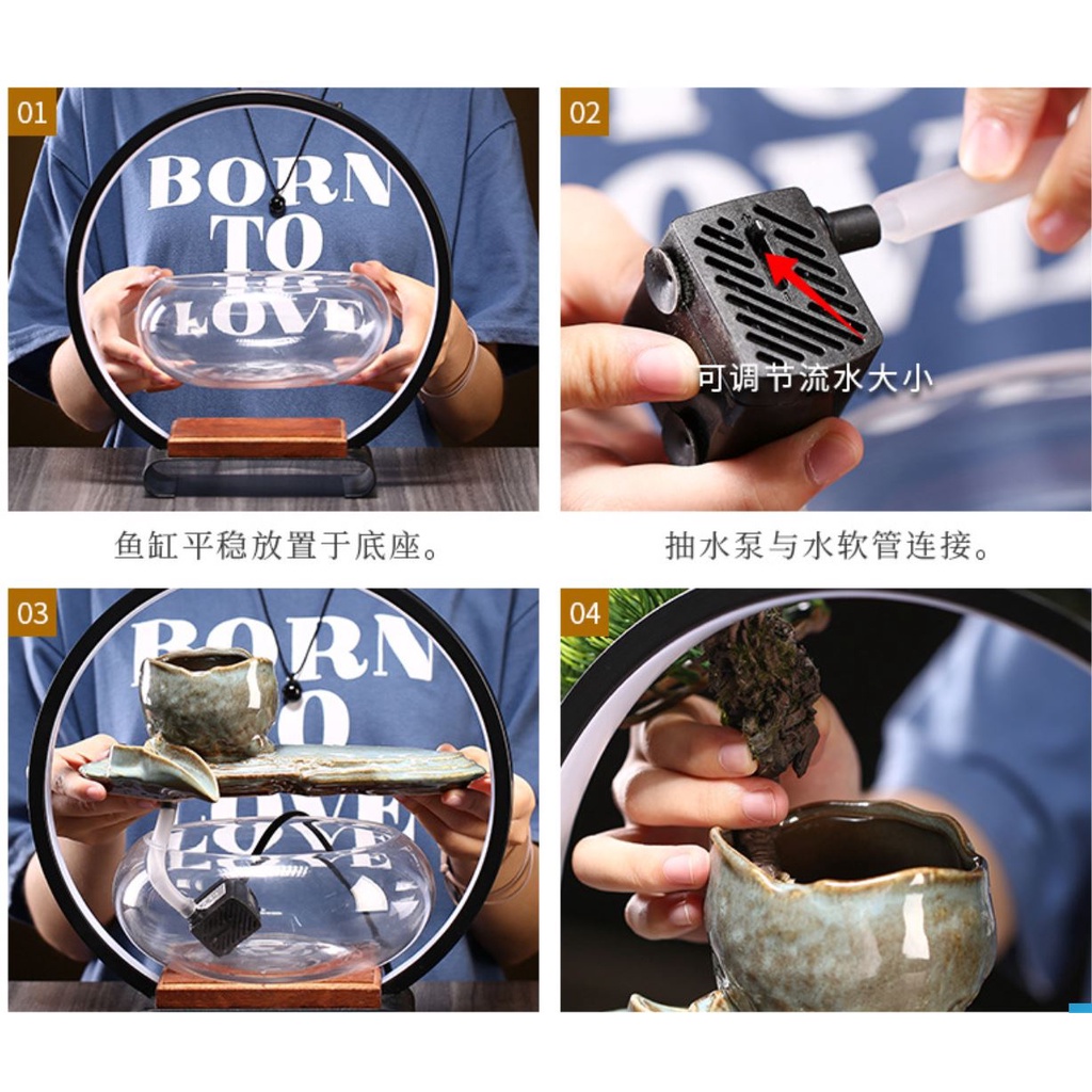 thác nước phong thủy bể cá. bể cá phong thủy. bể cả tiểu cảnh mini. bể cá mini thả cá kết hợp tiểu cảnh.