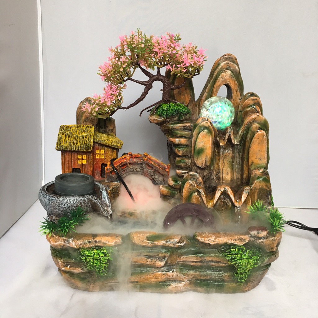 2) thác + máy khói: thác, máy bơm, đèn led, bi, cây giả, máy khói