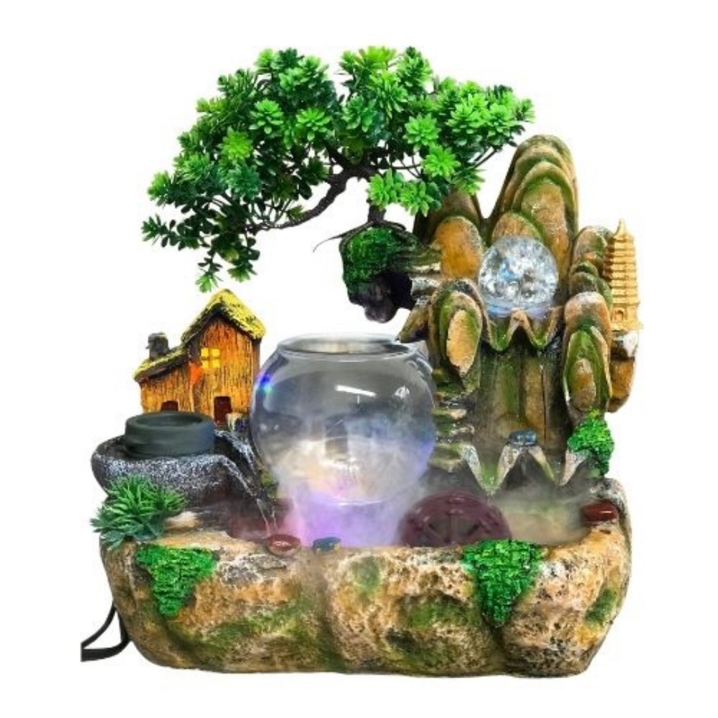 - Bộ thác phong thủy bao gồm:1 thác,bi quay,máy bơm kèm đèn ngũ sắc,cây nhựa trang trí,bể thủy tinh tròn