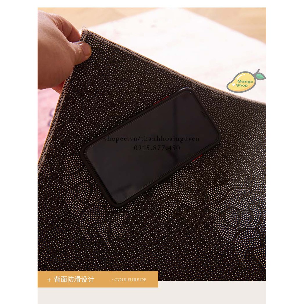 - Phía trên thảm bông, thấm hút tốt, không sợ bai xù khi giặt.