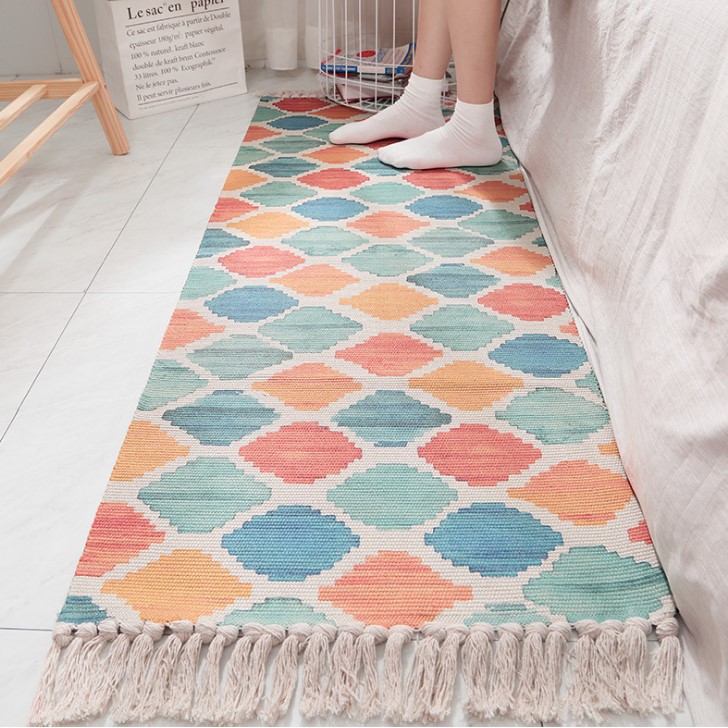 Giới thiệu Thảm CanVas Bố Dày Phong Cách Bohemian Chic Trang Trí Chân Ghế Sofa Chân Giường Ngủ PA9281