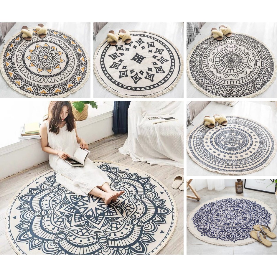 Nhà cửa & Đời sống > Trang trí nhà cửa > Thảm trải sàn || Thảm Canvas Tròn Tua Rua Scadivian Thổ Cẩm PA9885Còn hàng